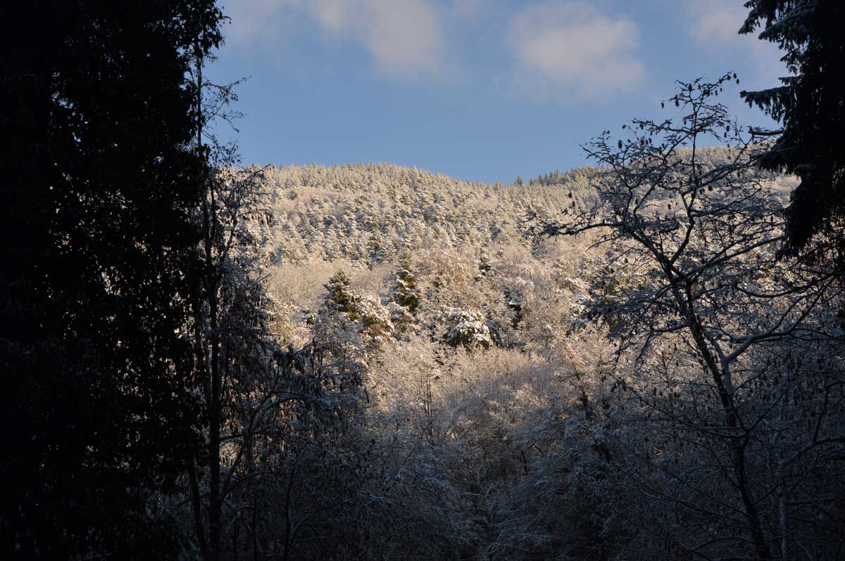 Très vite, nous fûmes récompensés par cette atmosphère féérique que la neige avait installée de manière de plus en plus marquée au fil de notre ascension dans la magie de l’hiver. Ouah, je m’épate ; elle est belle celle-là, attends je la relis et je reviens.