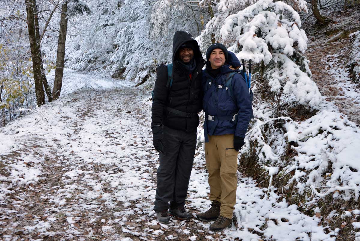 C’est à la descente qu’on a rigolé. Enfin pas tous, note bien. Entre gamelles verglacées et quelques cris d’une surprenante virilité style caniche de salon qui se serait coincé la queue dans la porte de sa niche, plus de peur que de mal heureusement et beaucoup de rires !