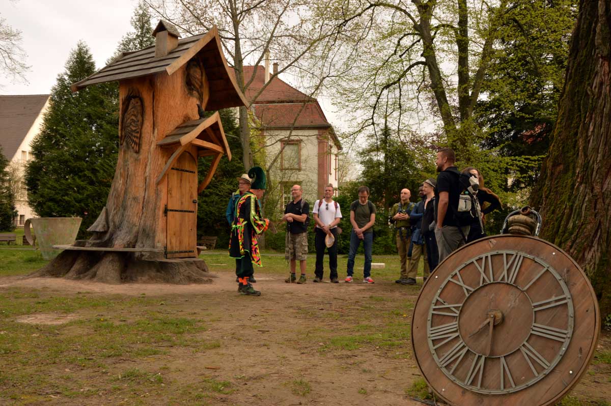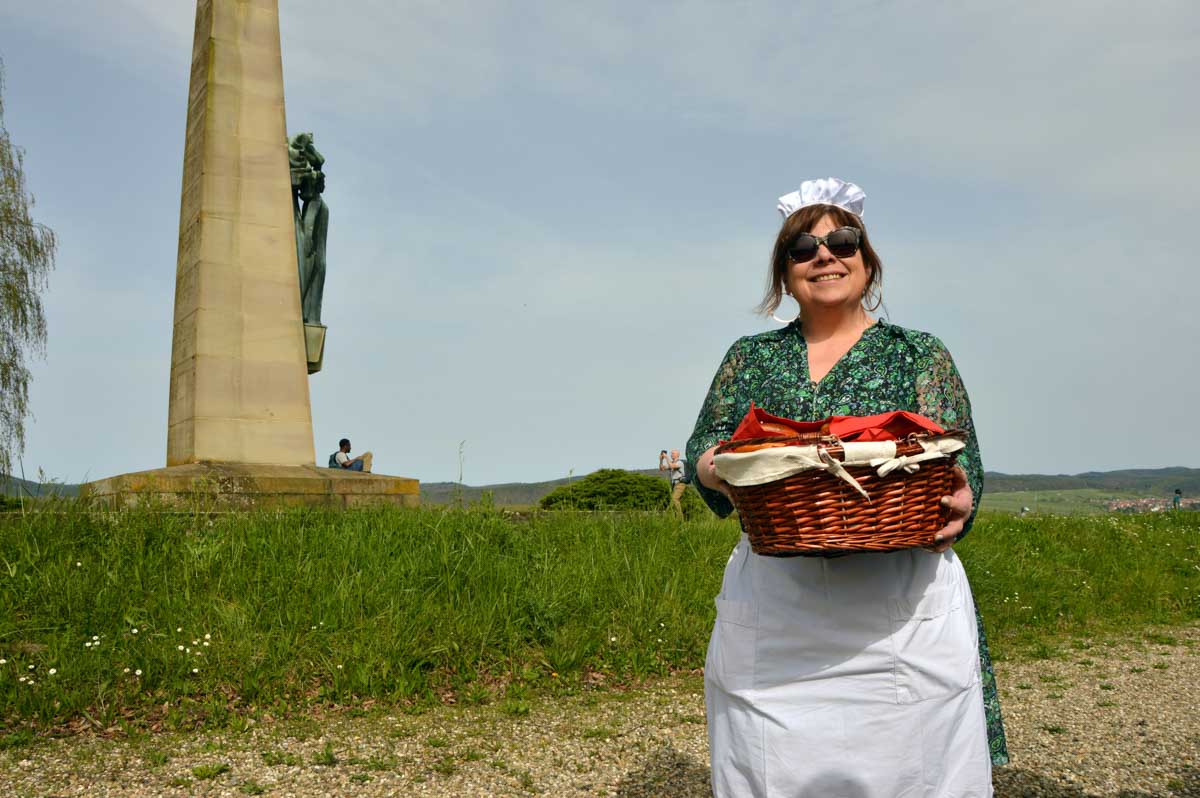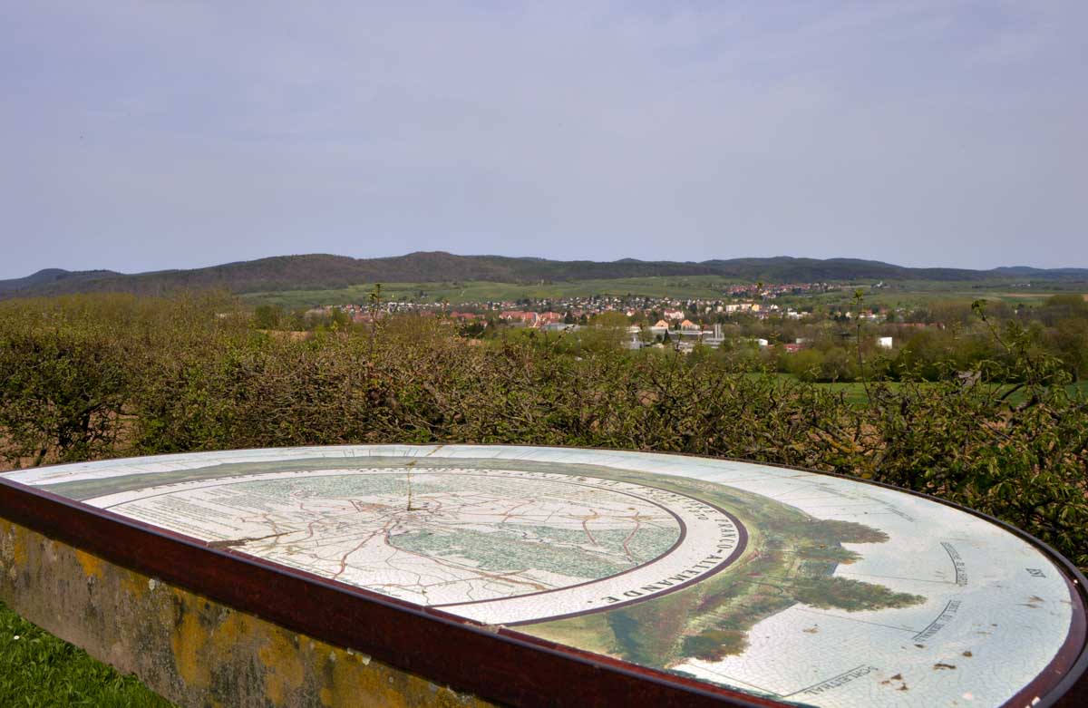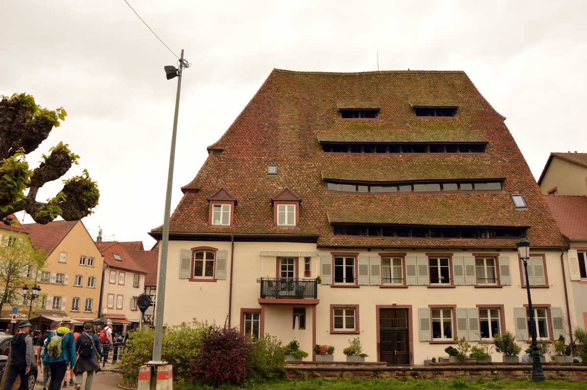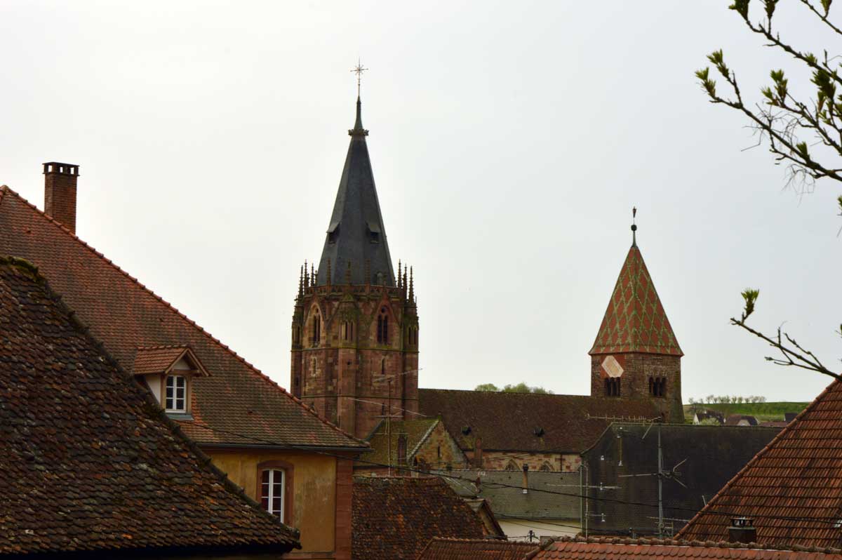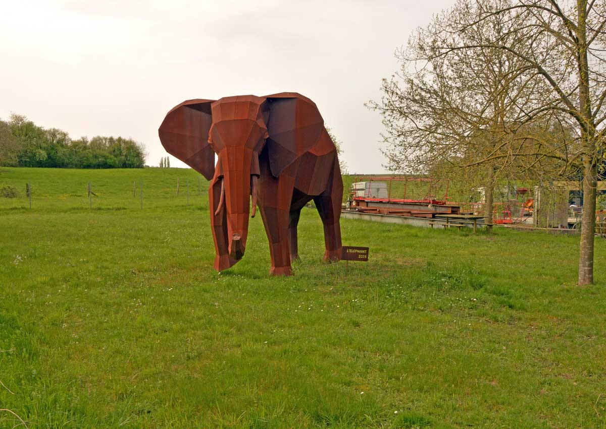 Chaussée, équipée, maquillée, coiffée, me voilà à Wissembourg pour découvrir la ville différemment, emmenée par Yogi qui, au Stichaner, nous a ouvert la porte du temps. Arbre transformé en bibliothèque et en horloge. Et arrivée au Geisberg, me voilà admirative, béate, coite, à profiter de la vue. Et surprise, la bonne du curé déhanchée sur la chanson d’Annie Cordy nous a servis l’apéro ! Après coite, j’étais cuite, la cervelle dans la ouate, ouate else ? Pourtant l’éléphant rouge, il existe ! Ben tiens, regarde les photos !