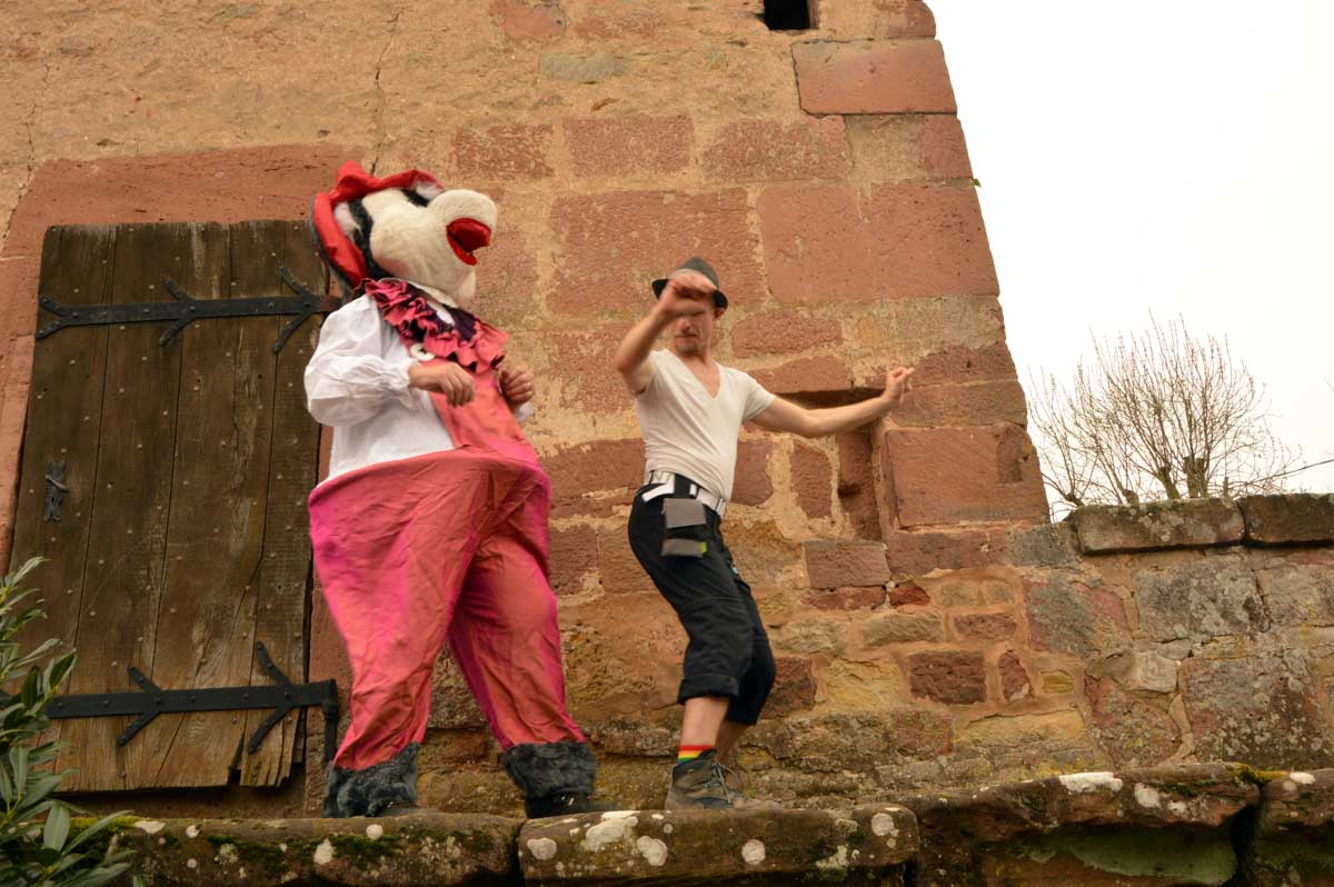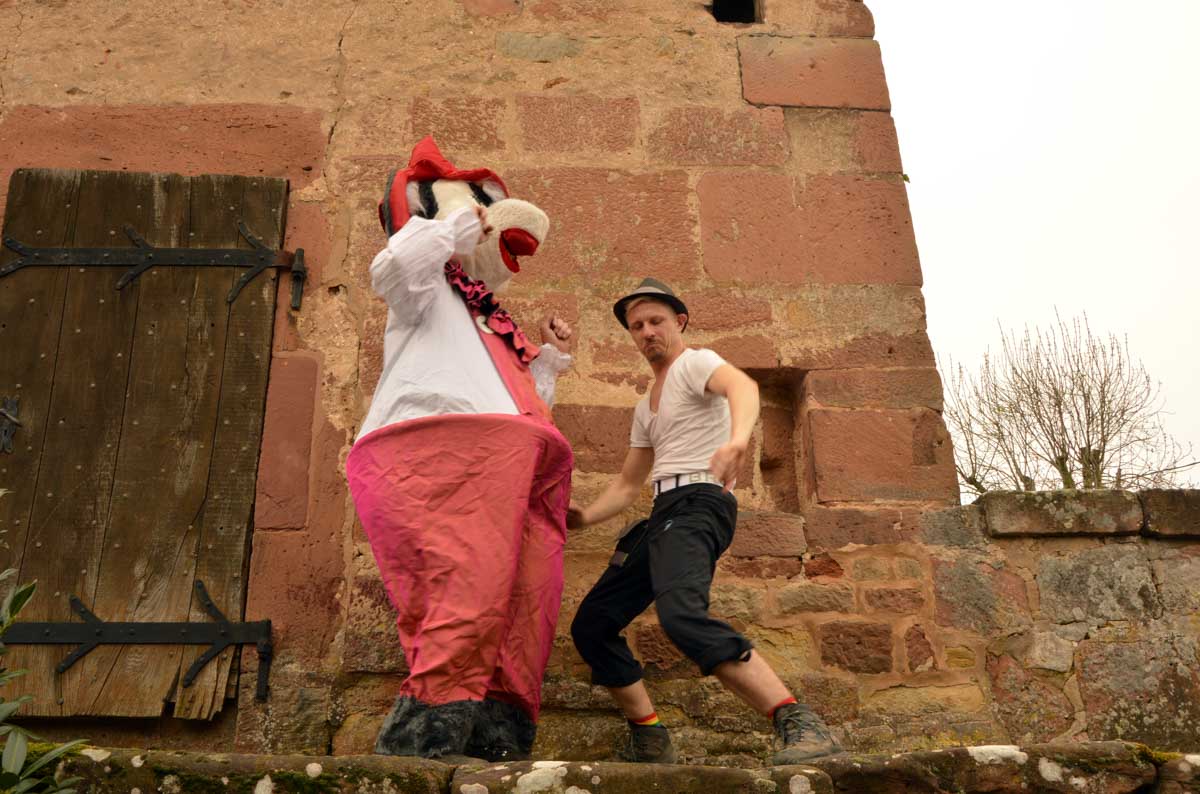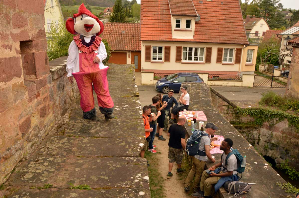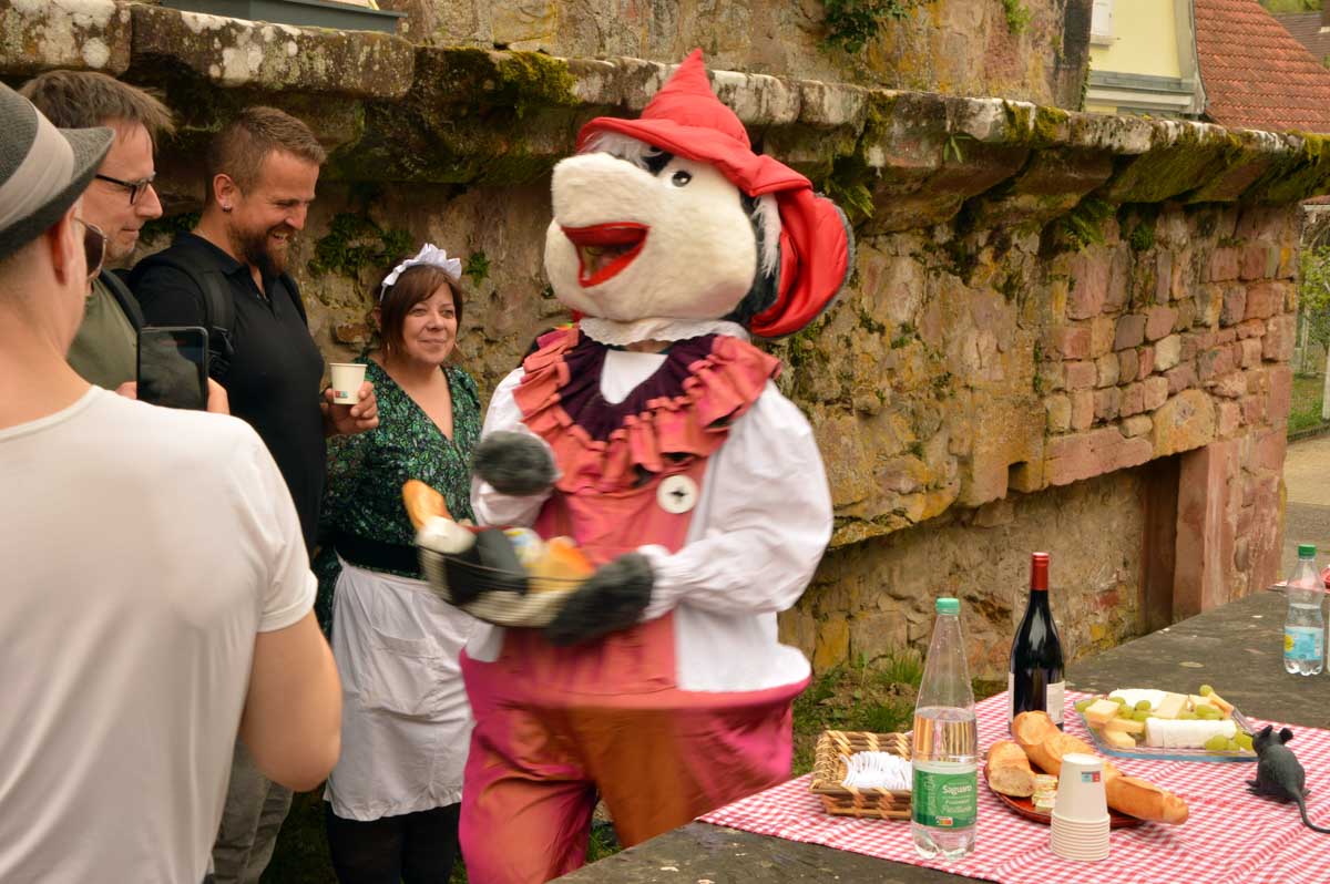 Un pied devant l’autre, parfois un pas de travers, voilà que je reconnais le quartier et le lavoir de la Bruch. Réalisant ainsi qu’on s’éloignait sans crier gare de la gare où nous étions garés. Et tout à coup est arrivée la Spitzmüs, la musaraigne, avec son panier de fromages et bien sûr le pinard qui va bien. C’est au fromage que le coin est devenu une discothèque improvisée, avec la Spitzmüs et ses fans dansant sur les remparts de la ville. Je connais des touristes qu’en reviennent toujours pas mais qui reviendront sûrement. Au-delà de la porte du temps, il se passe vraiment des drôles de choses… Je pensais avoir survécu à toutes ces épreuves quand on m’a annoncé qu’on allait vers Stanislas. Du nom de… accroche-toi on décolle : Stanislas Leszczynski, roi polonais avare de voyelles et déchu, réfugié à Wissembourg vers 1720.