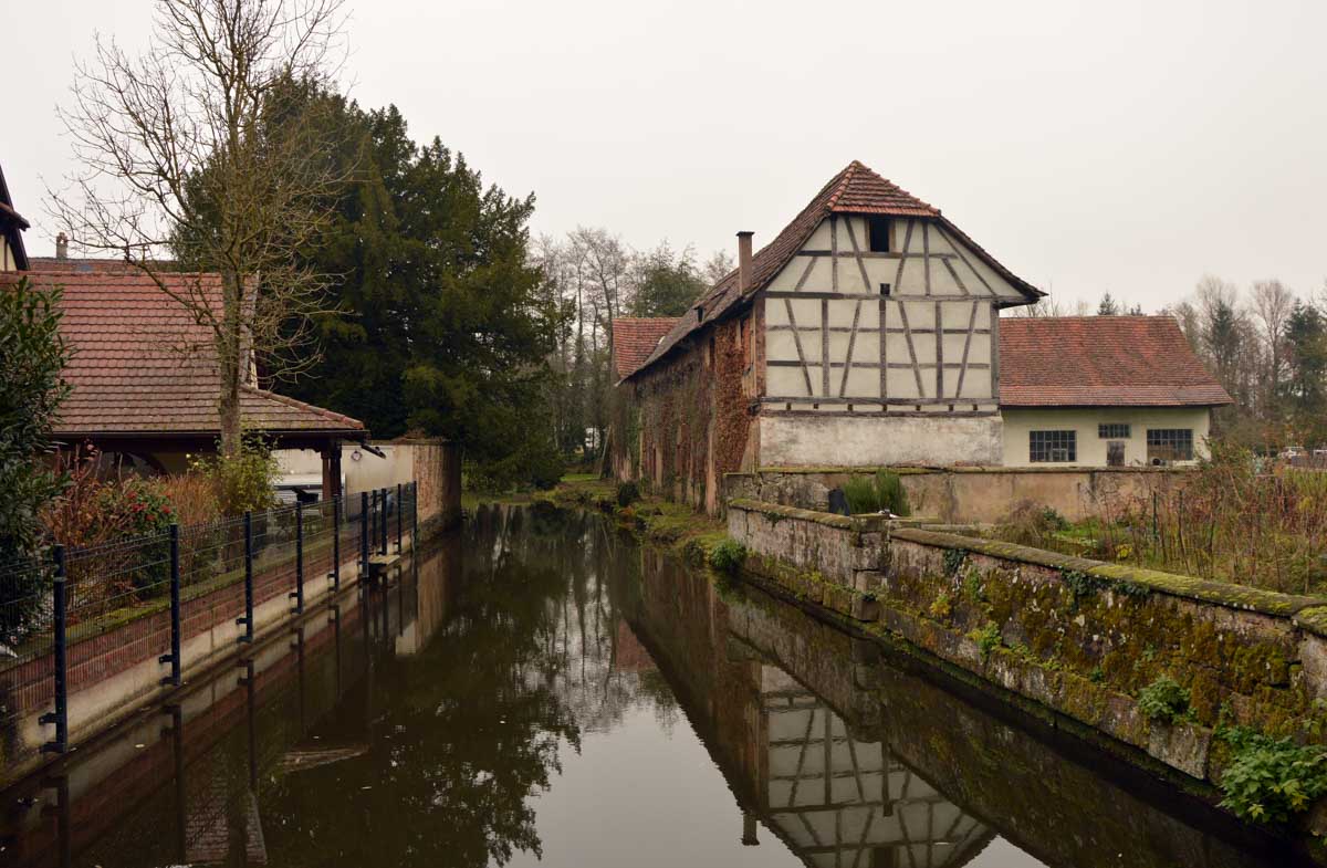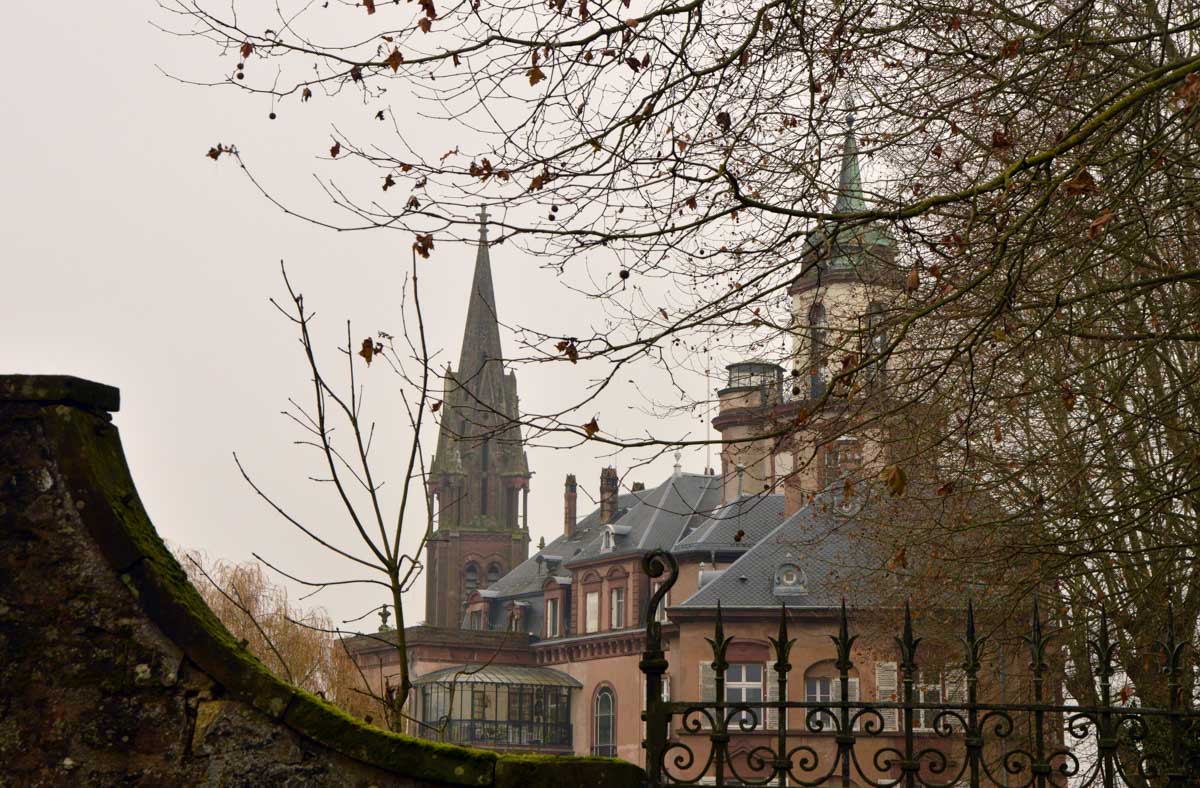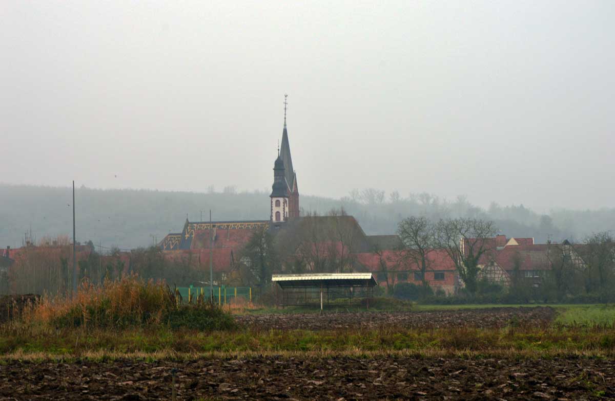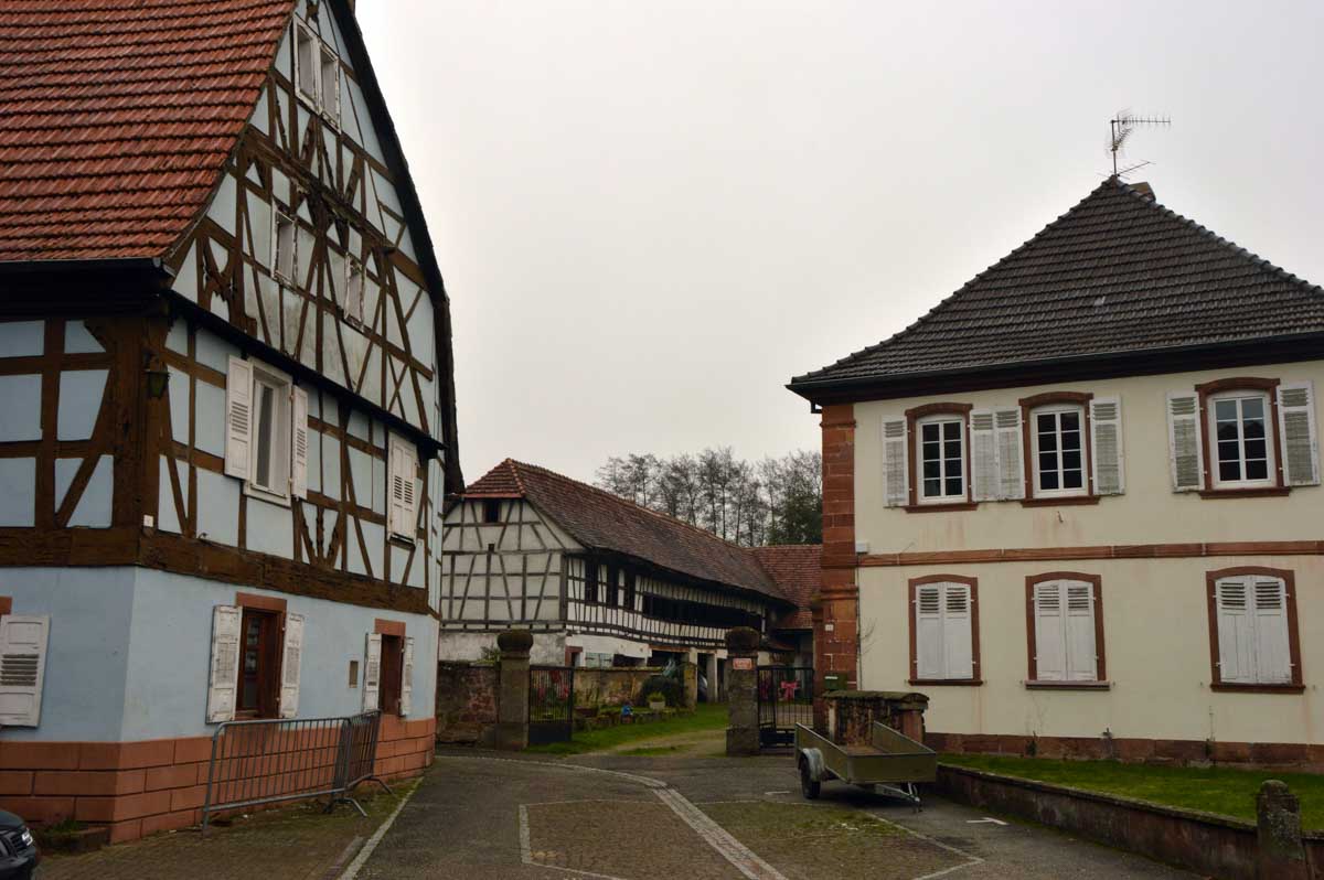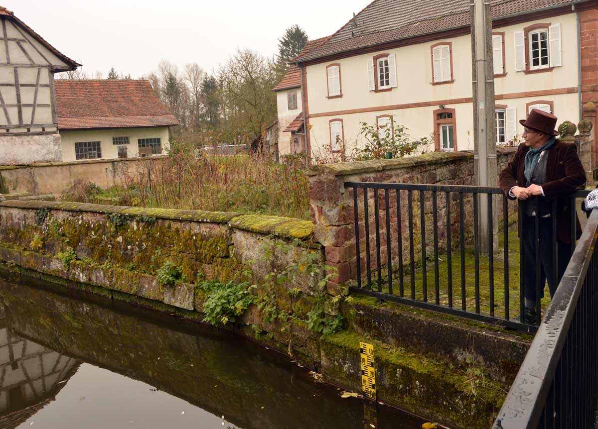Nous arrivâmes à Woerth dans la fraîcheur matinale, enfin carrément le froid quoi, et traversâmes cette petite bourgade entre son château et son lavoir, sur les traces du Petit Lucas. Un personnage de conte, de légende ? Bref, un garçon qui vivait tranquille à Woerth et qui en 1870 a fui son village en flammes pour trouver refuge dans l’église de Froeschwiller, tout en croisant des régiments, des bataillons, des escadrons, bref que des gens pas forcément les mieux intentionnés.