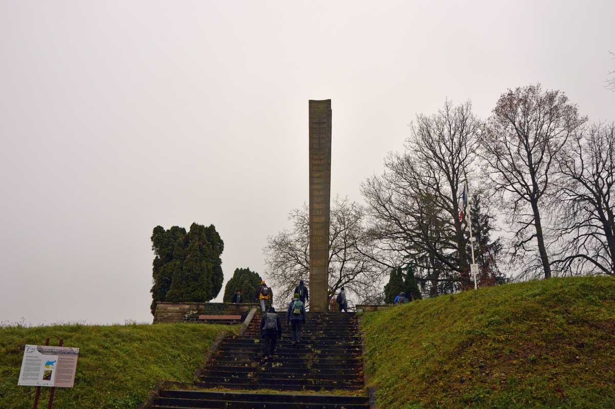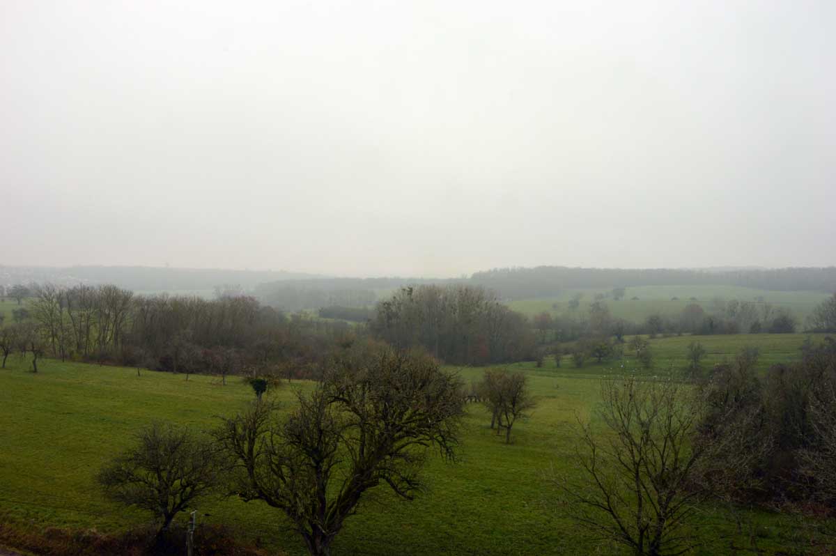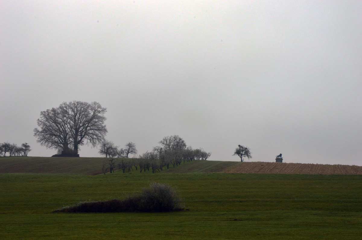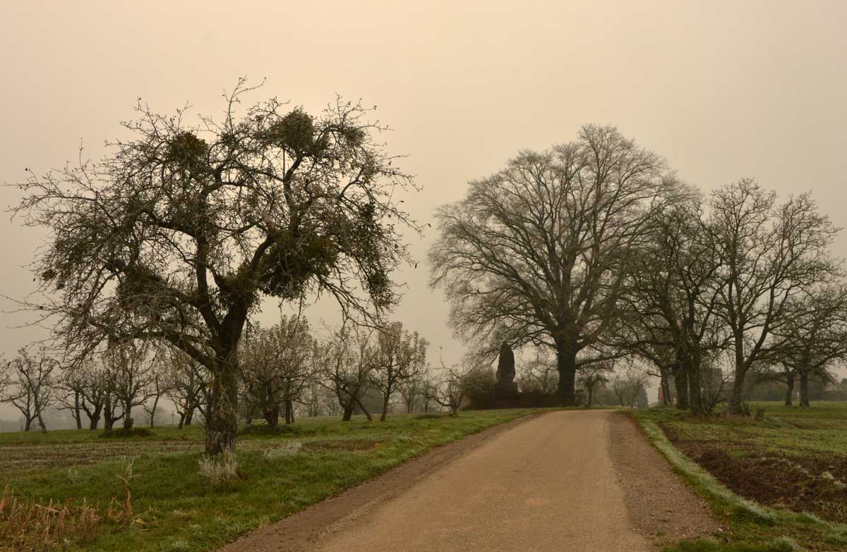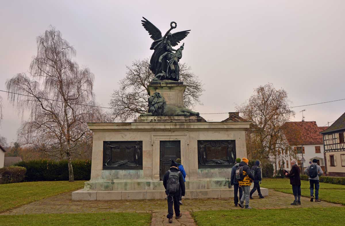 Donc dans le secteur, c’est calvaires, croix, tombes, monuments, ça force le respect. J’ai grimpé sur le belvédère dominant Woerth et Froeschwiller (mais pas Reichshoffen sinon il aurait fallu déplacer la ville, voilà, ça t’évitera des questions). Du mal à croire que ces prés dans la brume, ces villages tranquilles, tout ça était incendie et canardage ! A l’époque, paraît que ça faisait un peu l’inspecteur Harry qui aurait rencontré Terminator et dérangeant par là Godzilla en train de boulotter le requin des Dents de la Mer. Bref, une boucherie sans nom, des vies sacrifiées, la guerre qui comme toujours, n’est pas belle.