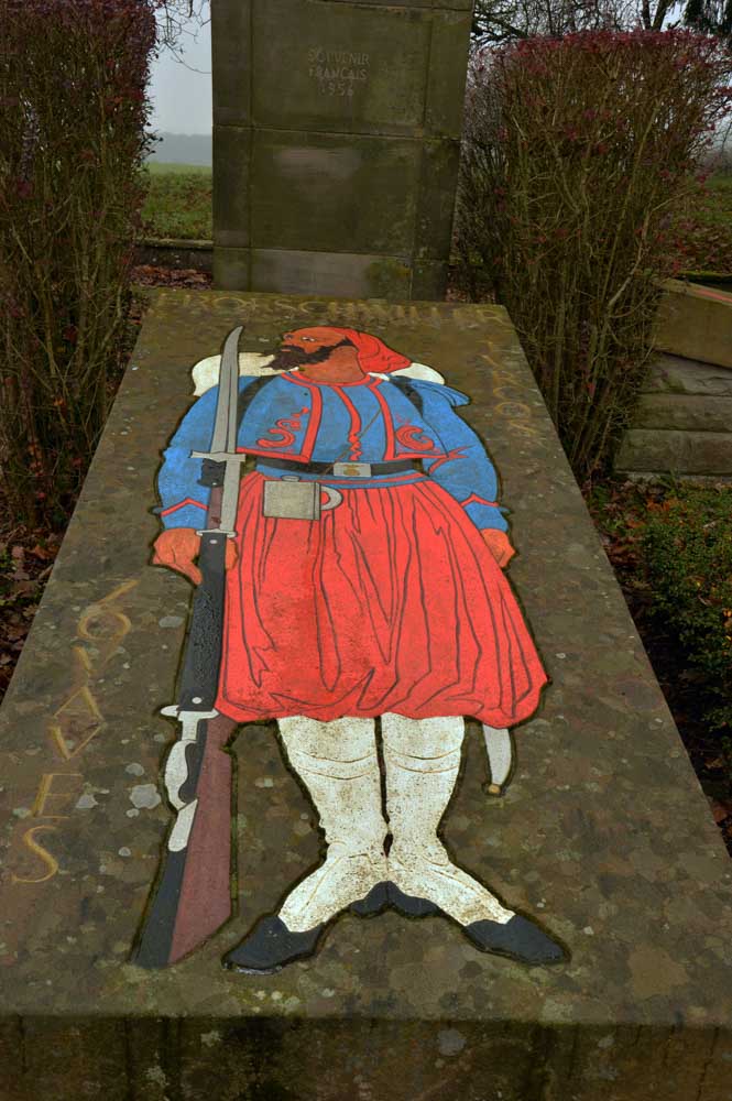 Et c’est là que je tombe sur le monument aux Zouaves et aux Turcos. Instantanément, mon imagination hormonale s’enflamma telle une allumette qui attendait d’être frottée, pareille à un briquet qui ne rêvait que d’être vidé. Les zouaves sont donc des fantassins africains venus renforcer l’armée française du 19ème siècle jusqu’à la fin des années 1950. Je te rassure quant à la main de ma sœur qui n’a jamais frôlé un sarouel de zouave, contrairement à celle de mon frère Kévinou-Gérard qui a tenté sa chance mais s’est retrouvé à la fois plâtré et complexé.
