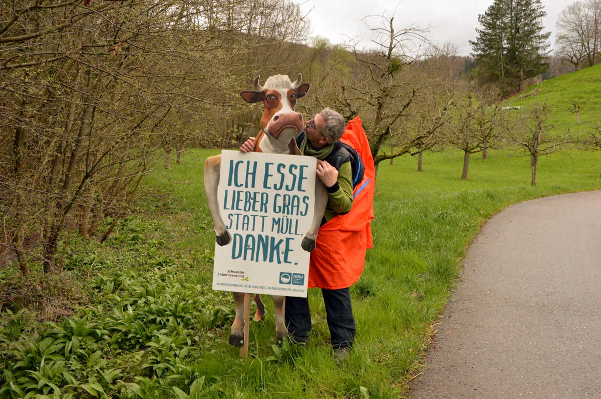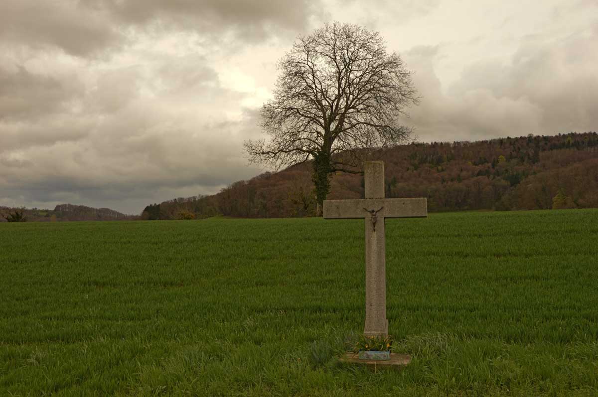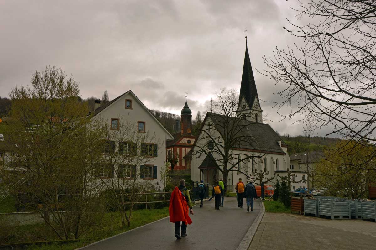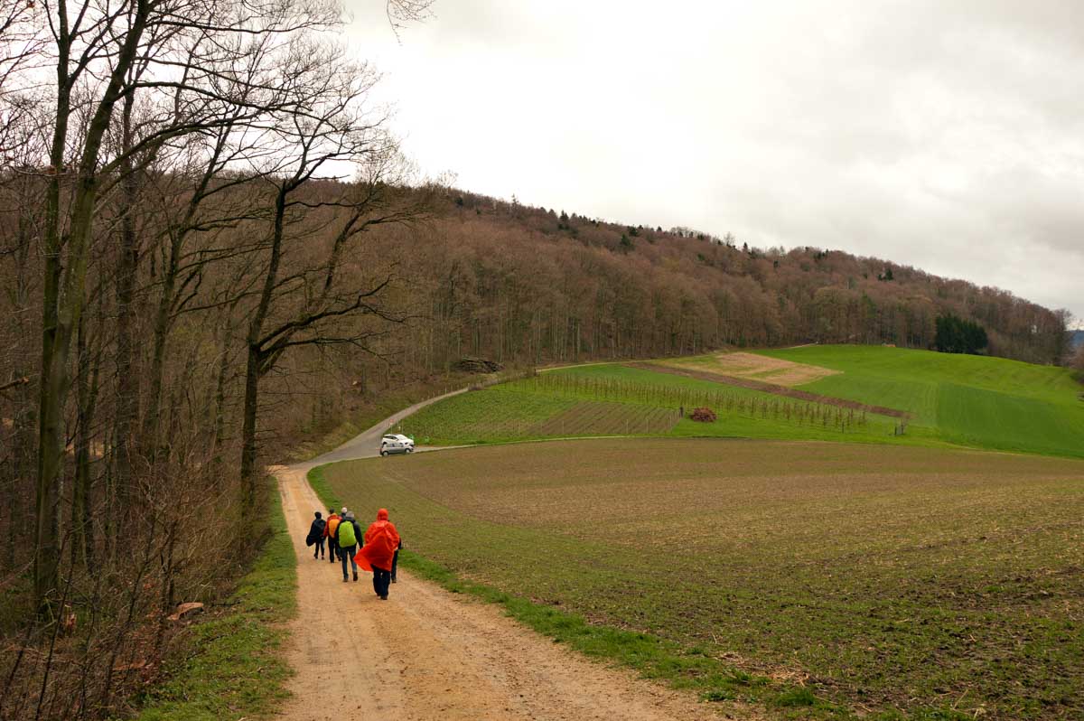 Les giboulées de mars, je veux bien, mais on est en avril, mon canard ! Et même eux, les canards, ils sont restés au sec. Mais bon, on n’est pas non plus des… hein, donc nous voilà propulsés dans la montée depuis Zeiningen. Alors on cape, il ne pleut plus, on décape, il repleut, on cape, on décape, moi j’étais toute décapée, à force !