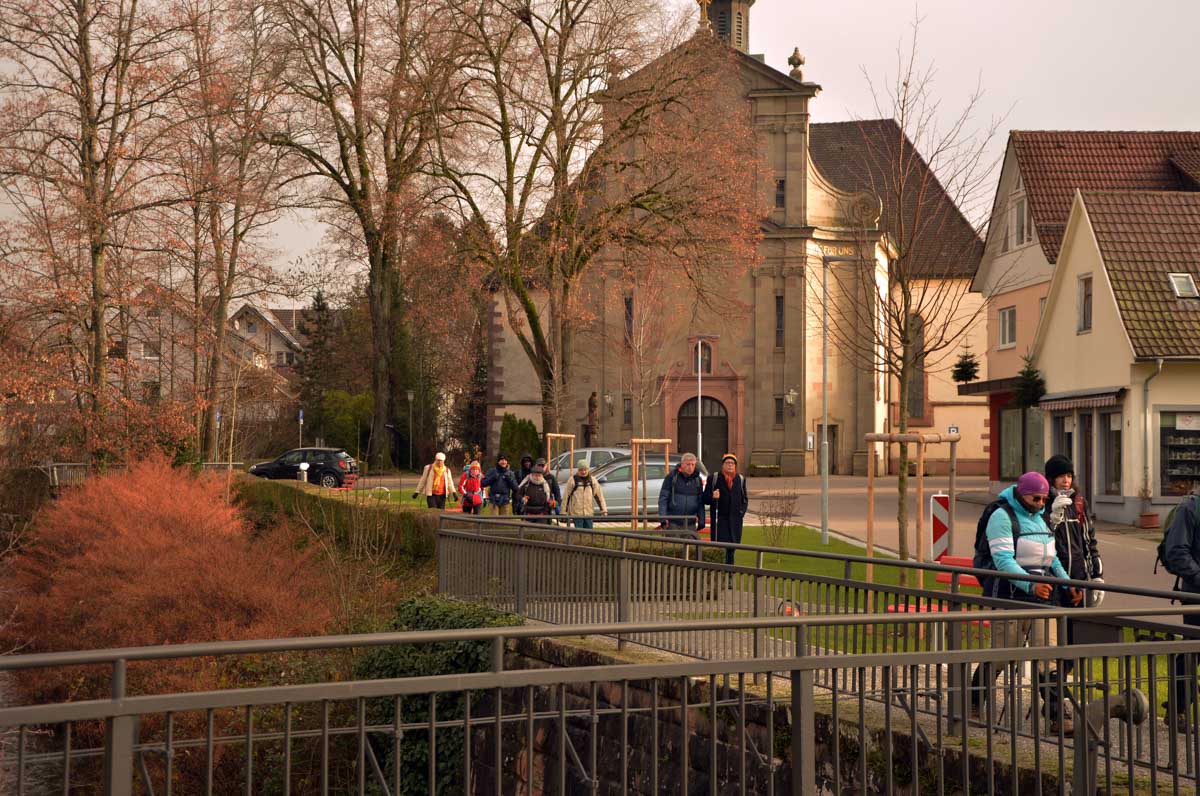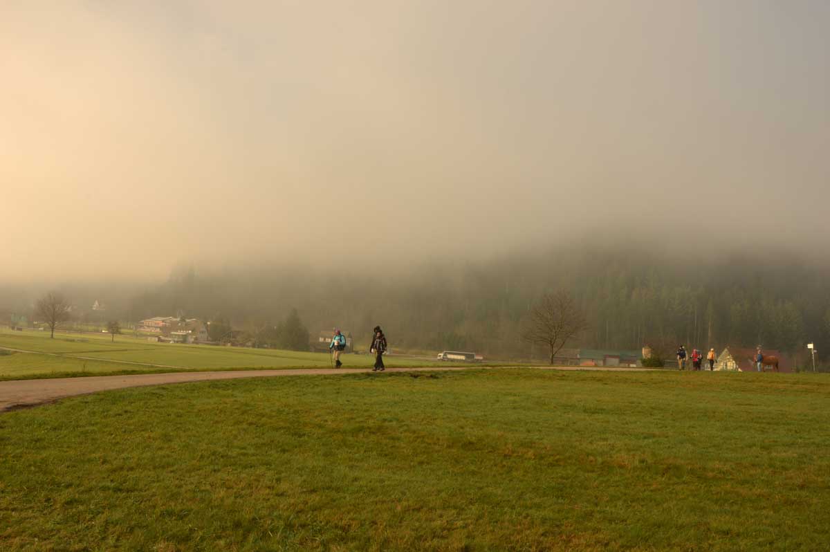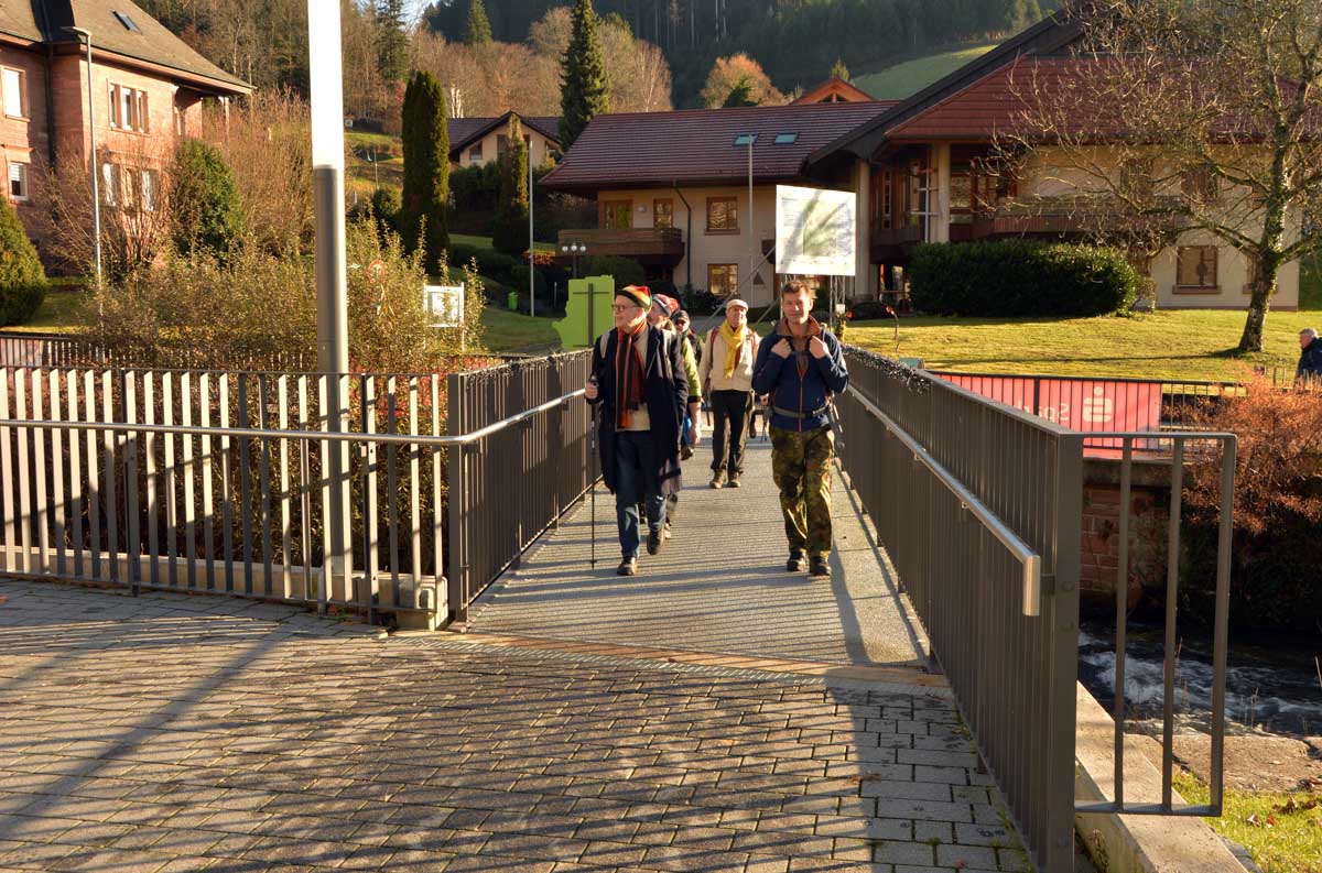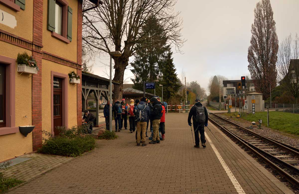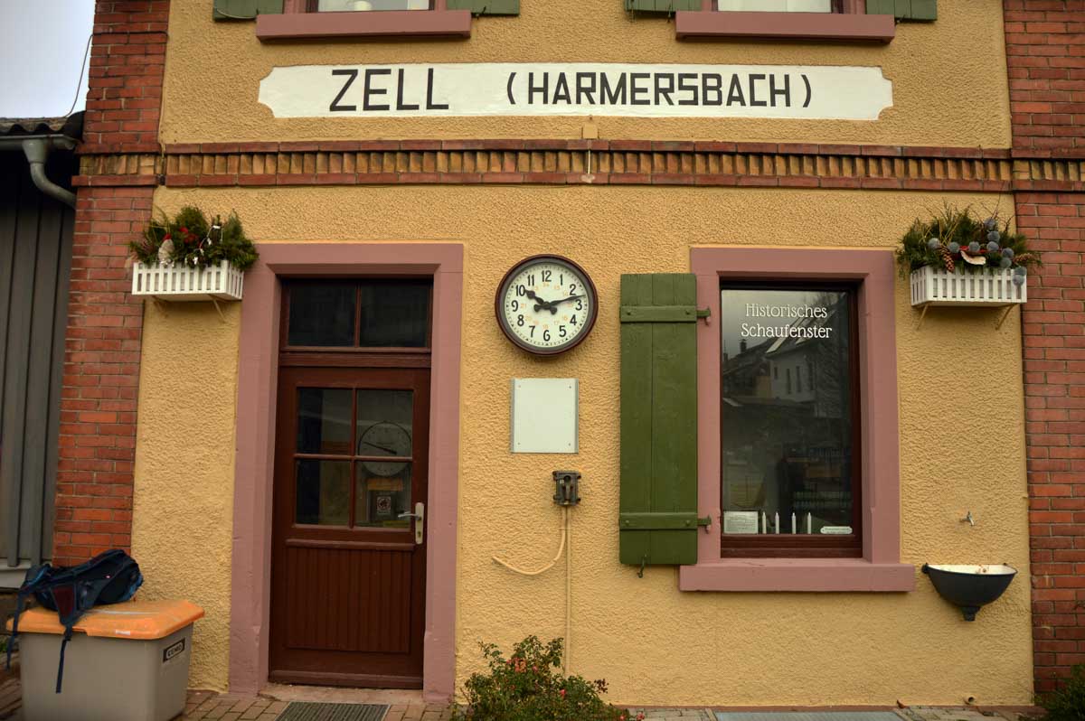 Le Glühwein, en Allemand, ça veut dire le vin chaud. Il est pas mal, celui de Gengenbach, je déguste le premier de la saison. Donc nous voilà partis de Gengenbach en train vers Zell-am-Harmersbach, tout ça pour revenir à pied à Gengenbach… Y’a un truc qui m’échappe, dans l’affaire, mais bon, j’insiste pas.