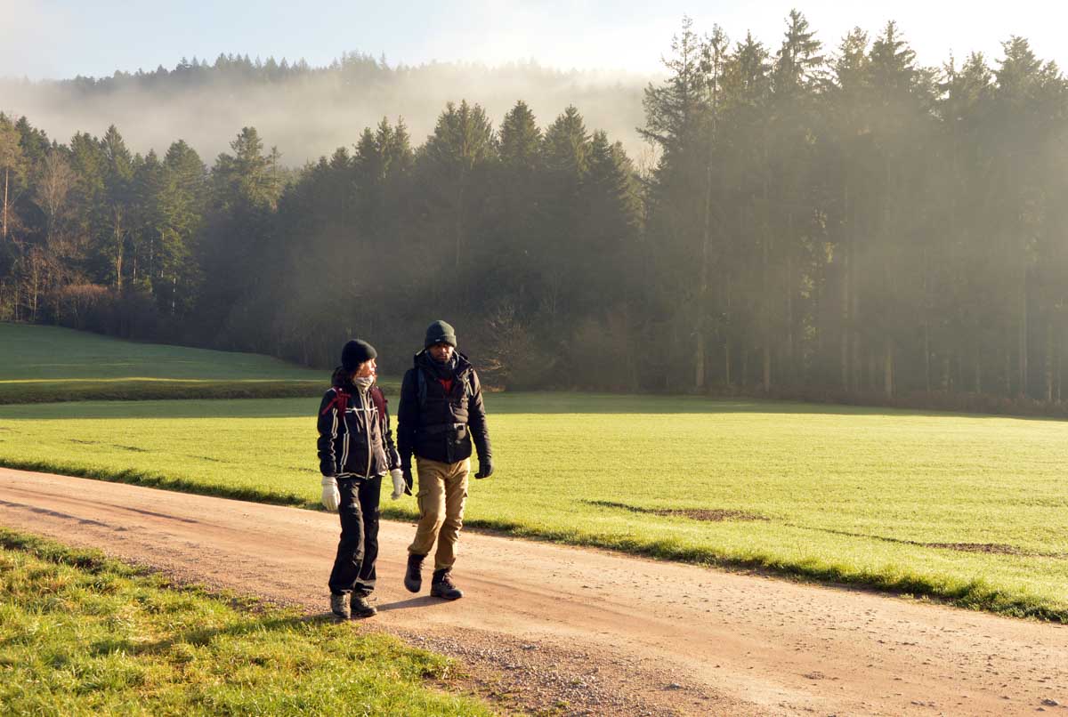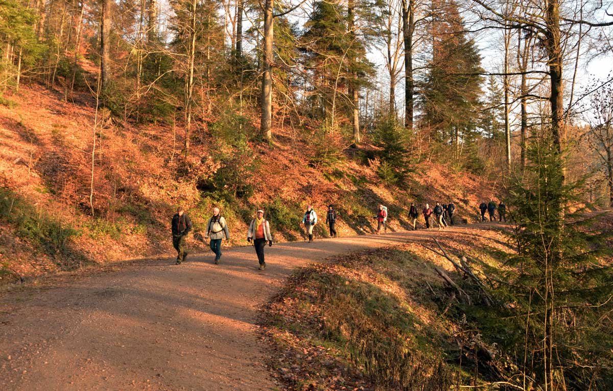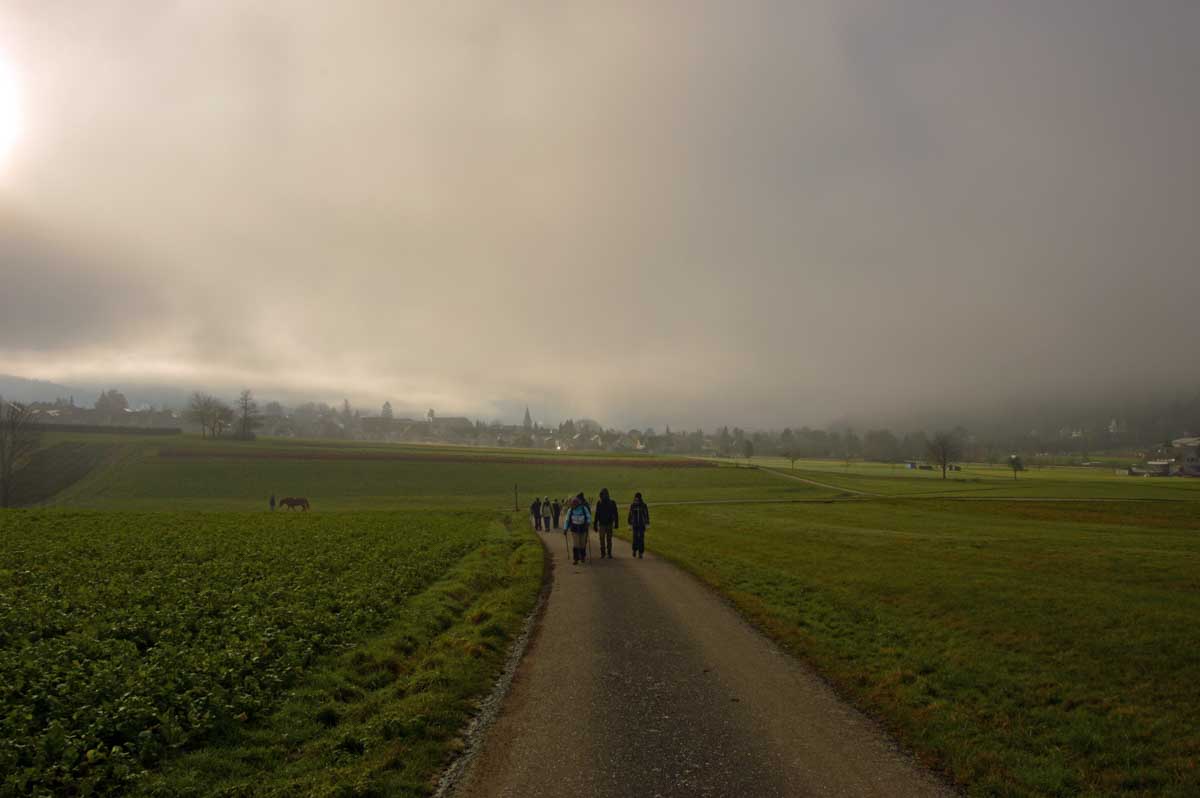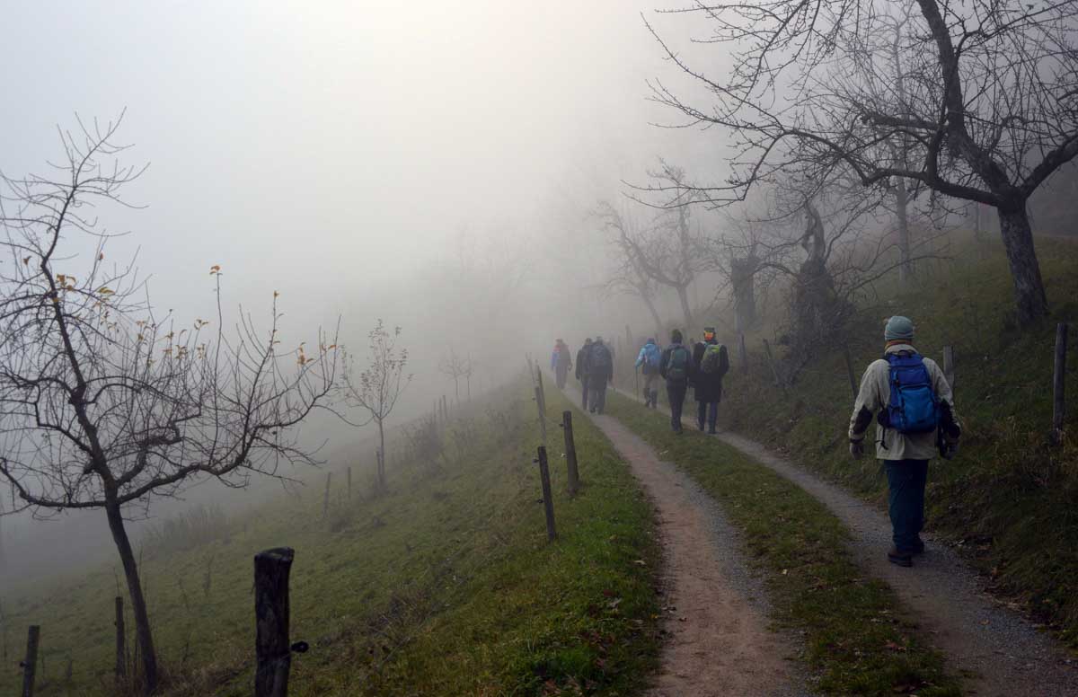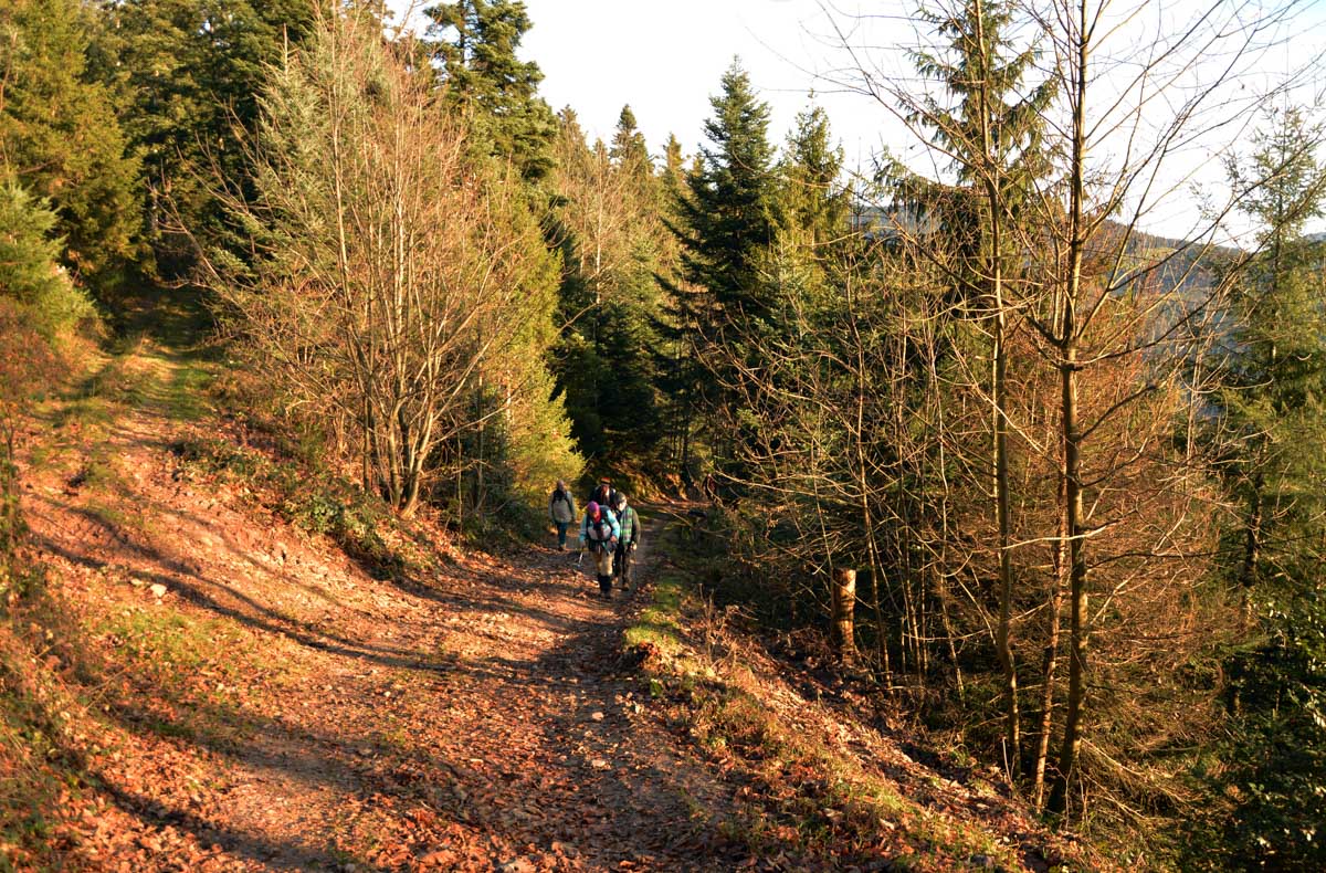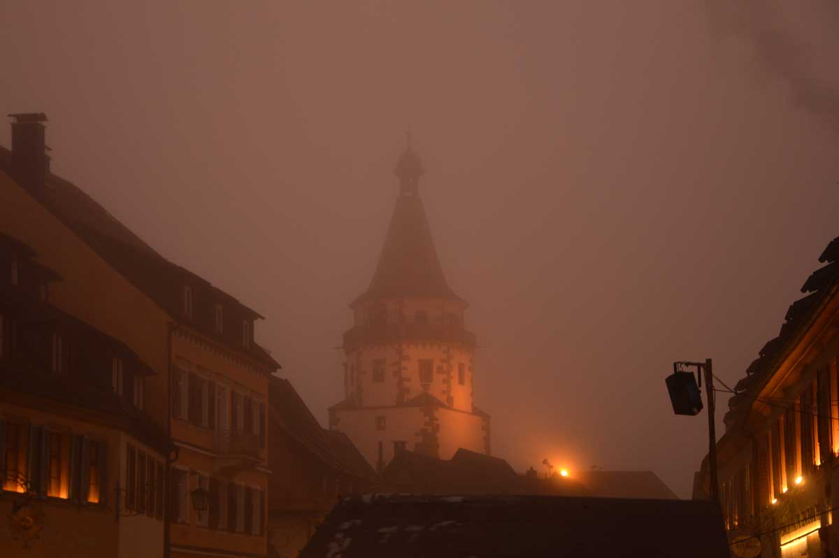 Le Glühwein, en Allemand, ça veut dire le vin chaud. Il est pas mal, celui de Gengenbach, je déguste le premier de la saison. Donc nous voilà partis de Gengenbach en train vers Zell-am-Harmersbach, tout ça pour revenir à pied à Gengenbach… Y’a un truc qui m’échappe, dans l’affaire, mais bon, j’insiste pas.