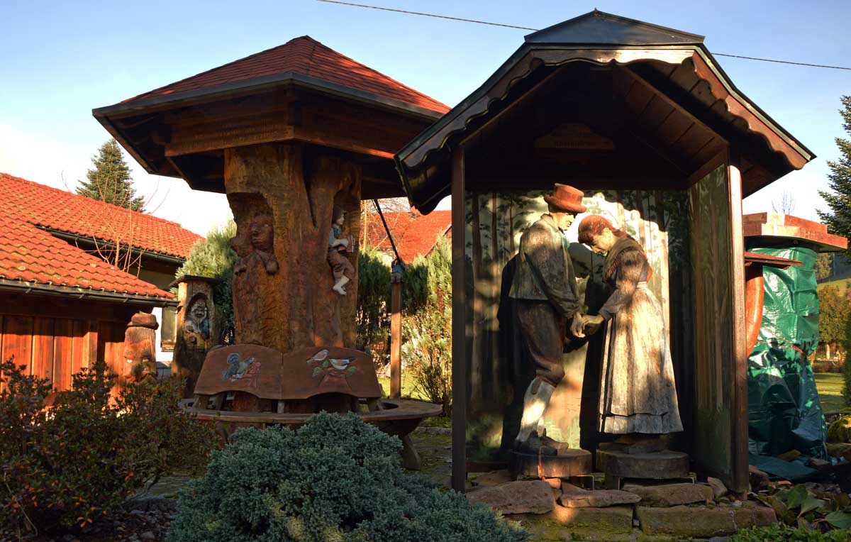 Donc on poursuit la balade dans la Vallée de la Nordrach en passant par la fontaine du radium. Tu me diras ce que tu veux, moi je préfère le glühweinum, hps… à la tienne ! Puis le village de Nordrach, entre Biberach, Zell-am-Harmersbach et Gengenbach, sans écouter du Bach, mais là pourquoi t’es à deux à me lire, là ? Les trois vins chauds, tu crois ?