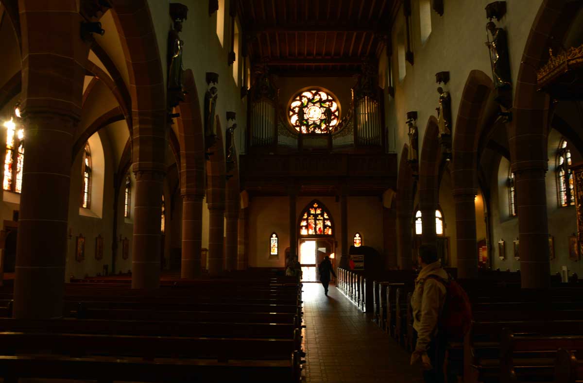 Garçon ! Enfin, Junger Mann ! One more Glühwein ! Ja wohl, direct dans l’gosier ! J’y suis pour rien, moi, qu’après on a suivi le Ostbn.. le Obtsd… enfin le ch’min des bouilleurs de cru. C’est compliqué, l’Allemand avec quatre glwüh… trucs, dans la tête. Après, on s’est tapé Saint-Tulri… Ulchi… Ulrich ! Flûte (de champagne) alors ! Tite église sympa que je me croyais parfois à Pra… hps… Prague.